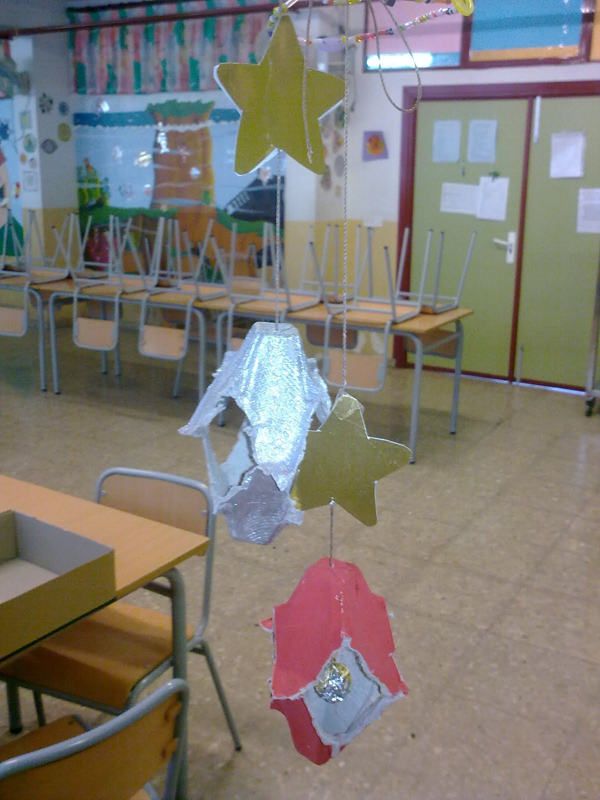 Los mas peques, han pintado las hueveras grandes con paciencia y pincel, y los mayores los han recortado, separando cada cápsula por separado.