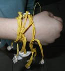Una vez acabado viene la elección más dificil. Podemos hacer un brazalete con los trozos más grandes o una pulsera usando trozos más pequeños. Nosotros, como ya he dicho, hicimos pulseras y las cortamos de la siguiente manera para aprovecharla toda. La medida que usamos fue la mitad del trozo más corto, es decir, del trozo en el que ponemos la boca hasta la zona arrugada, y asíu coratremos todas las cañas que nos hagan falta se pueden cortar de más por que siempre habrá alguien que le falte y la aprovecharemos.
